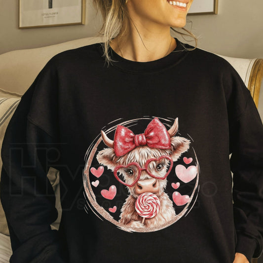 Valentine Highland Cow Sweatshirt: Coquette Western Love XOXO Crewneck