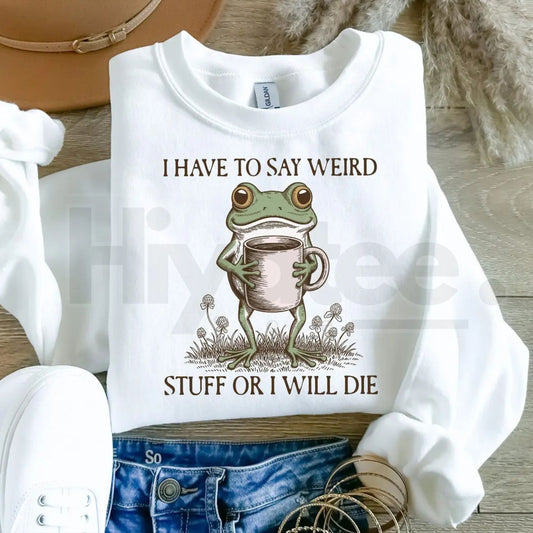 Funny Frog Sweatshirt: "I Have To Say Weird Stuff Or I Will Die" Meme Crewneck