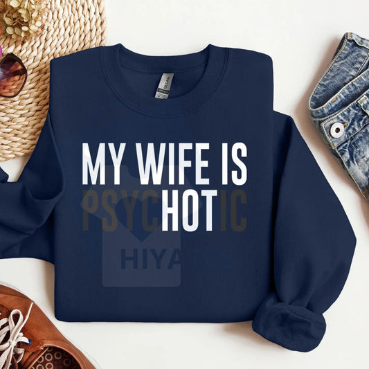 My Wife Is Psychotic Sweatshirt: Funny Husband Gift, Humor Men’s Sweater, Anniversary or Valentine’s Day Gift for Him