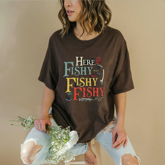 Men's "Here Fishy Fishy" T-Shirt – 100% Cotton Quick-Dry Fishing Graphic Tee 180gsm