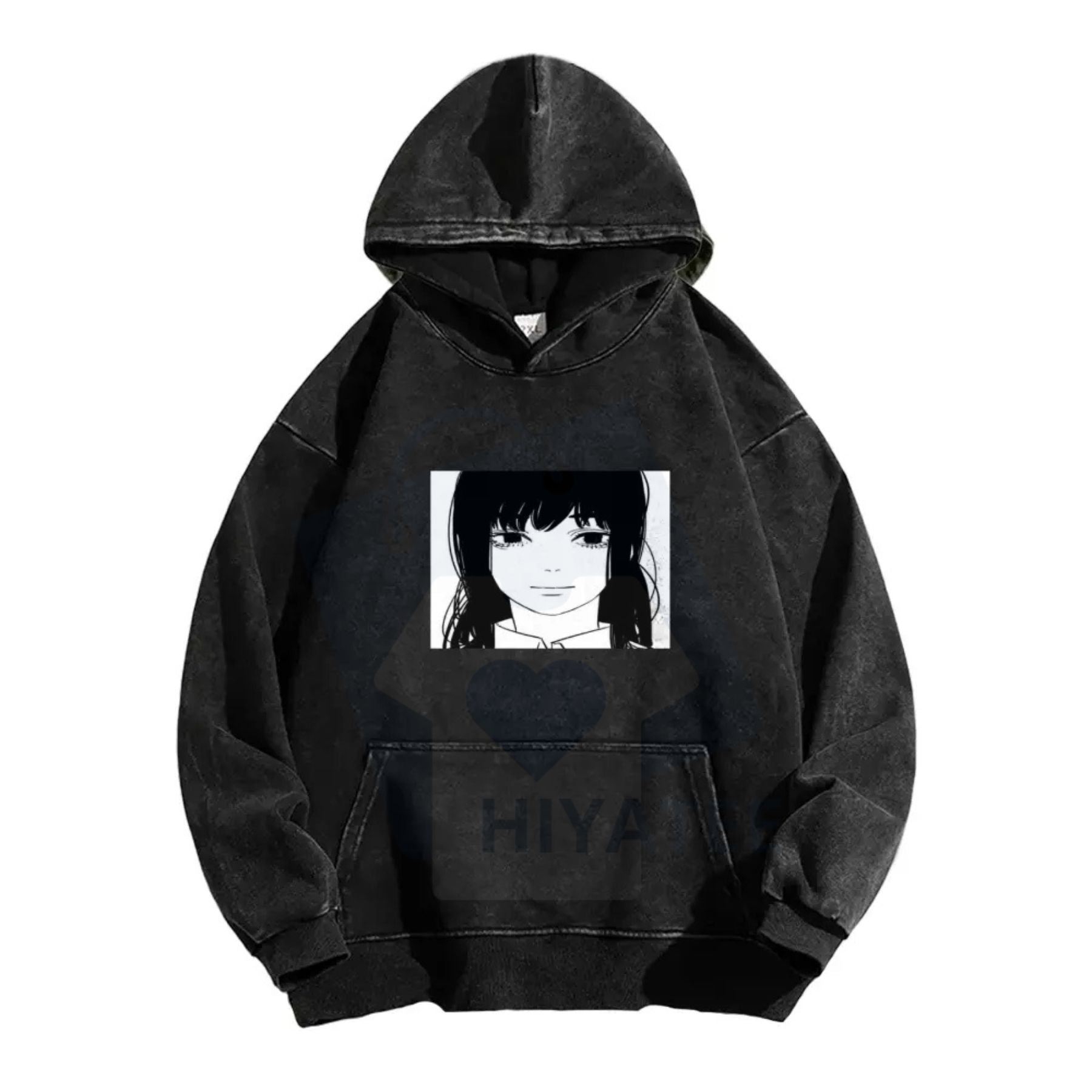 Asa Stare Chainsaw Man Washed Hoodie – Fun Anime Reference, Vintage Streetwear Gift