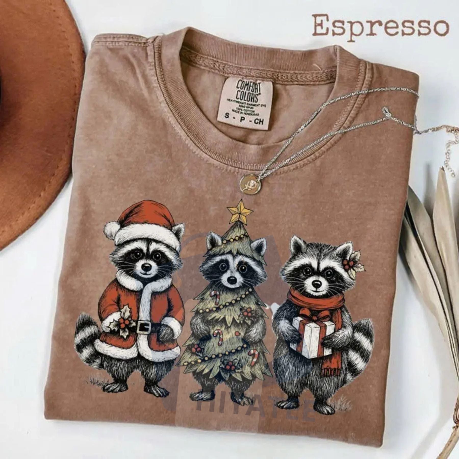 Comfort Colors Christmas Raccoons T-Shirt – Cute Woodland Trio Holiday Tee