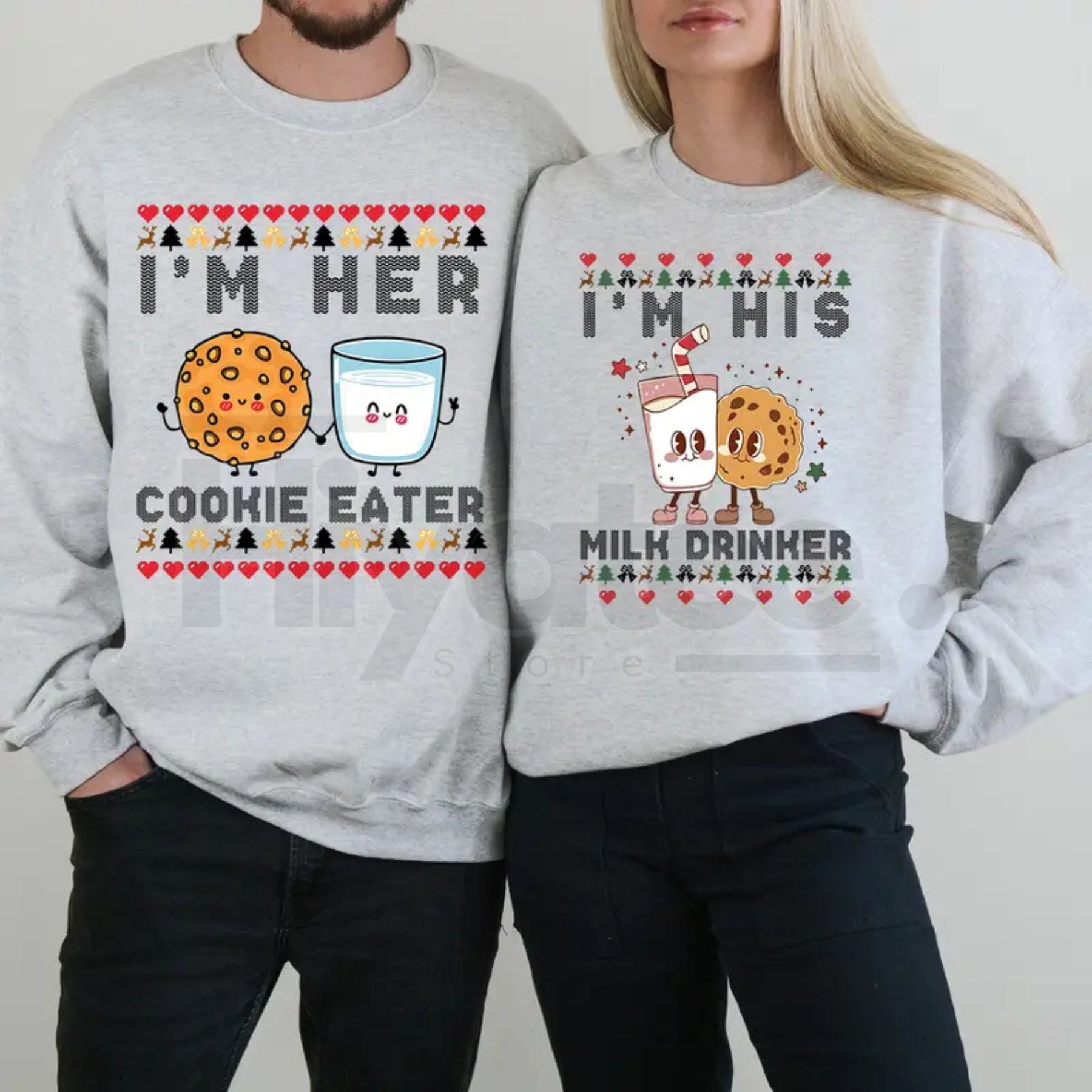 ✅ Grab Yours Now: Find your perfect match! Get your Cookie Eater & Milk Drinker Couple Matching Christmas Sweatshirts today.