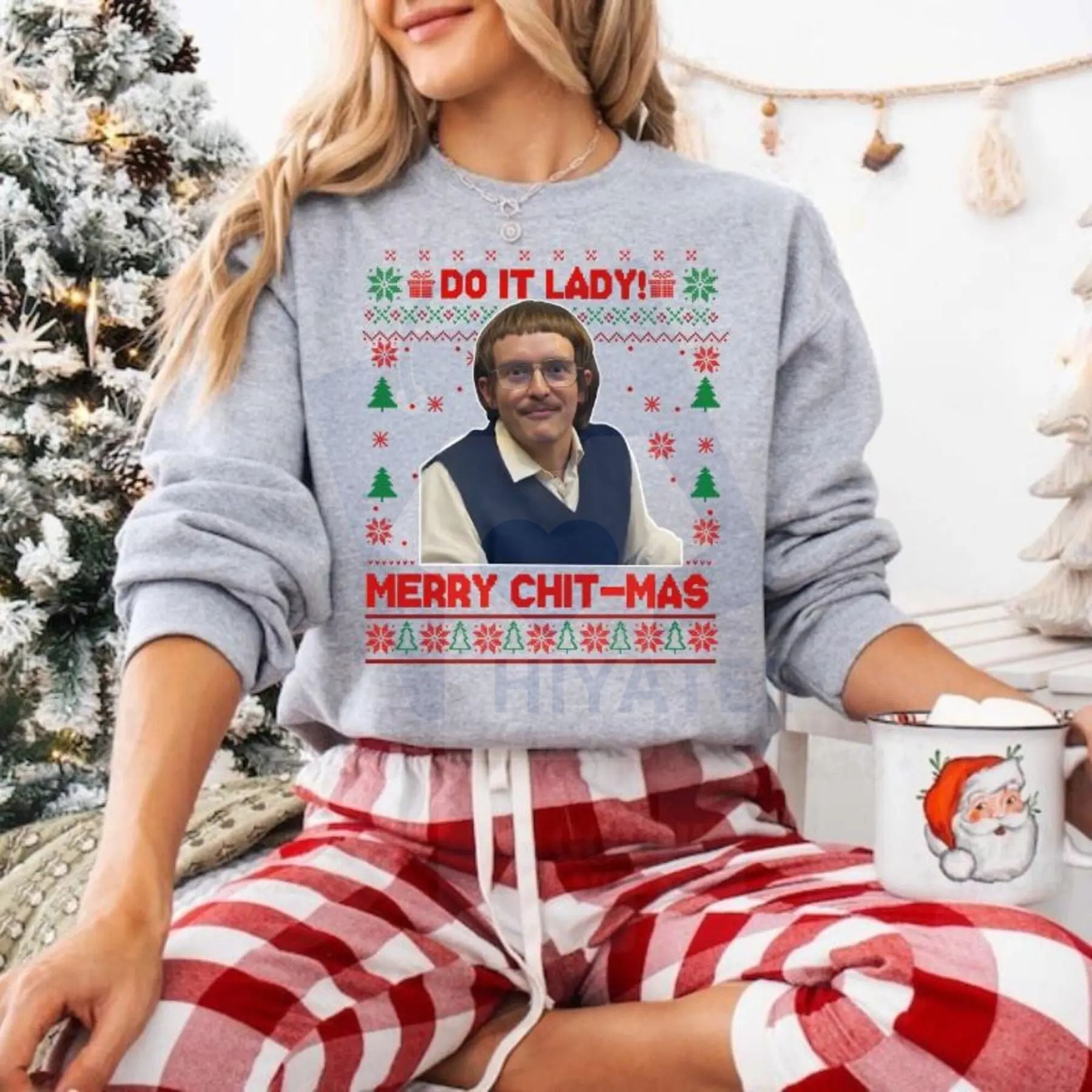 • Funny/Cheeky Slogan: Features the memorable, slightly absurd phrase "Do It Lady Ugly Christmas Chit."