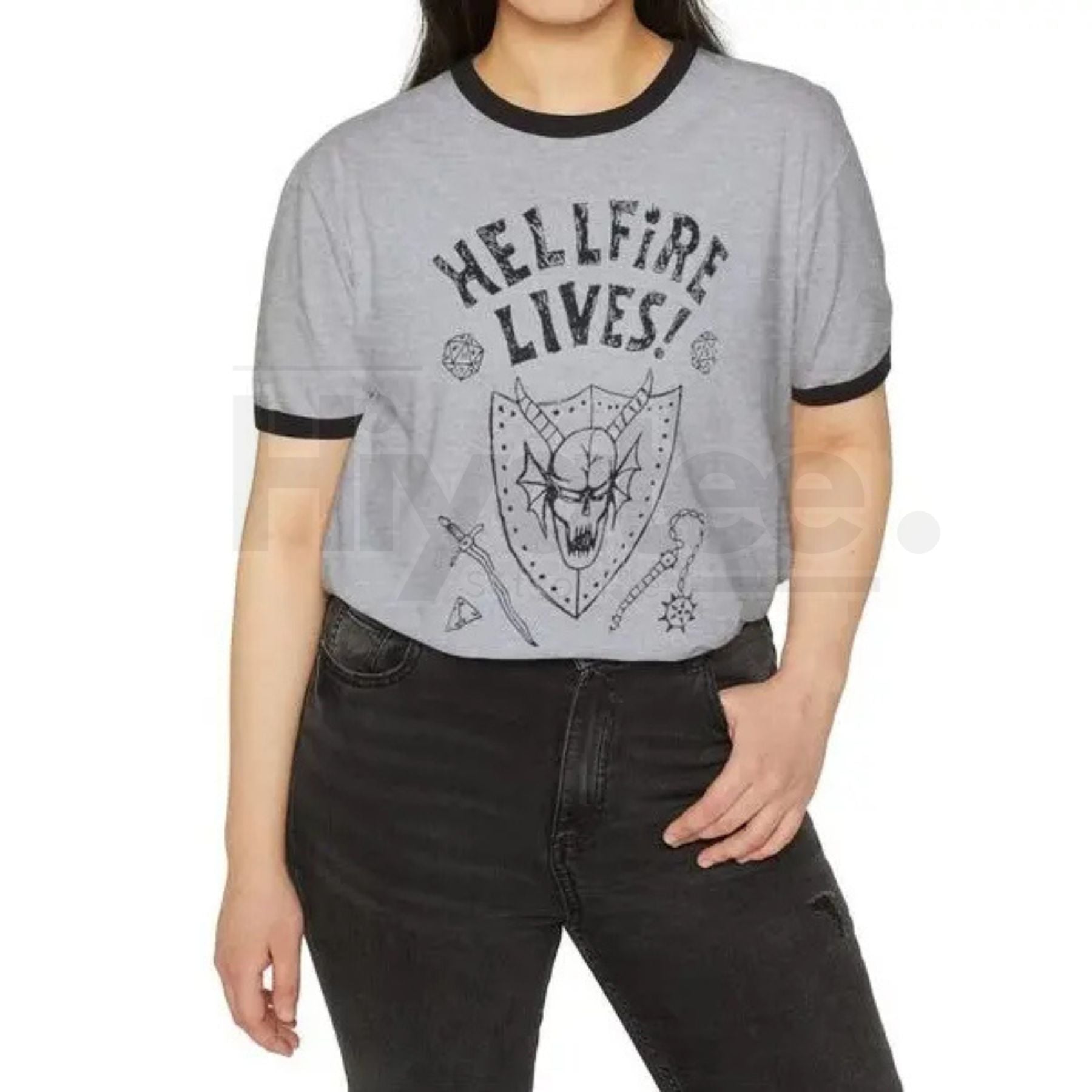 Featuring a bold graphic that celebrates the "HellFired Lives" legacy, this unisex ringer tee combines retro sporty vibes with modern fandom. It’s the perfect gear for your next marathon watch party, comic-con, or casual street style.