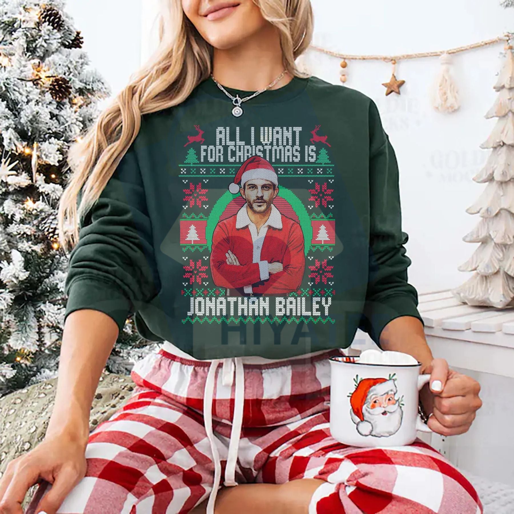 • Festive Fan Slogan: Features the enthusiastic phrase: "All I Want For Christmas Is Jonathan Bailey."