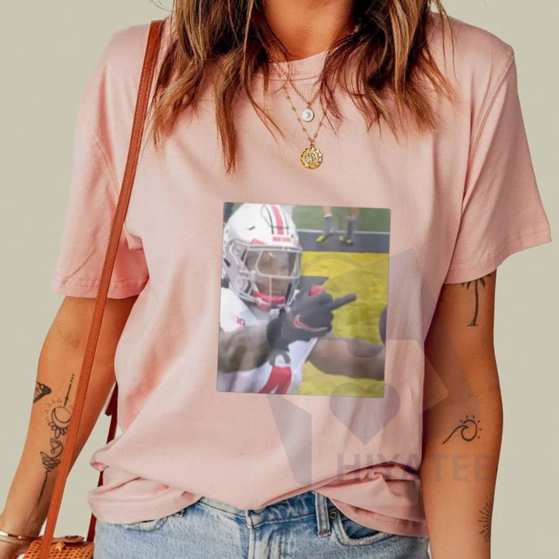 Commemorate a legendary moment of college football rivalry with the Jeremiah Smith Flips Off Michigan Fan T-Shirt! This tee captures the iconic, viral moment when the star player expressed his feelings during the rivalry game. This graphic tee is the ultimate statement piece for Ohio State fans and anyone who loves intense college football drama.