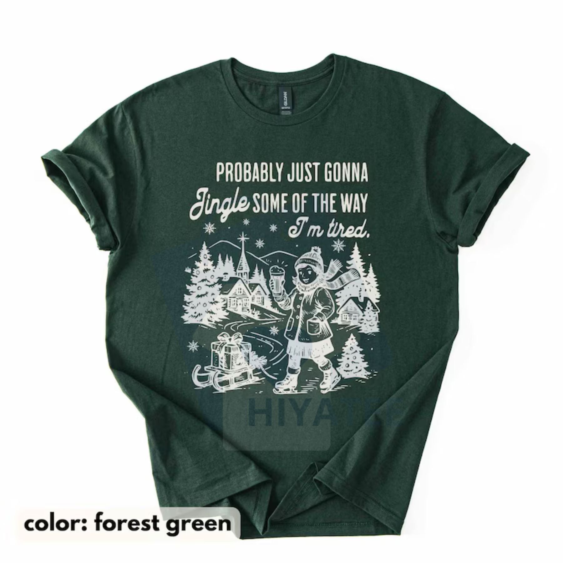• Funny Holiday Quote: Features the viral and relatable quote "I'm Probably Just Gonna Jingle Tired" for instant holiday humor.