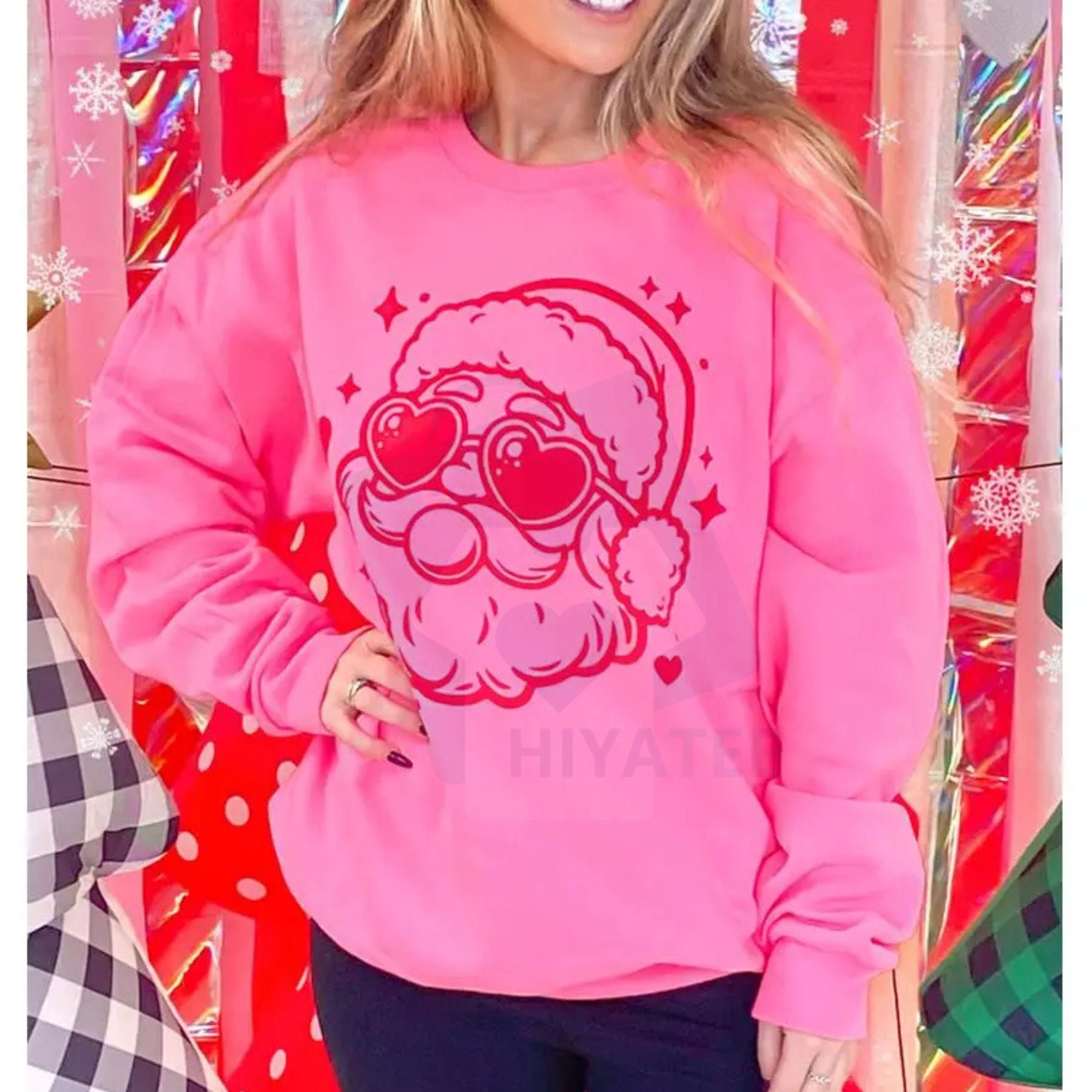 Magic Puff Bubble Gum Christmas Santa Graphic Sweatshirt – Trendy 2D Puff Print Holiday Jumper