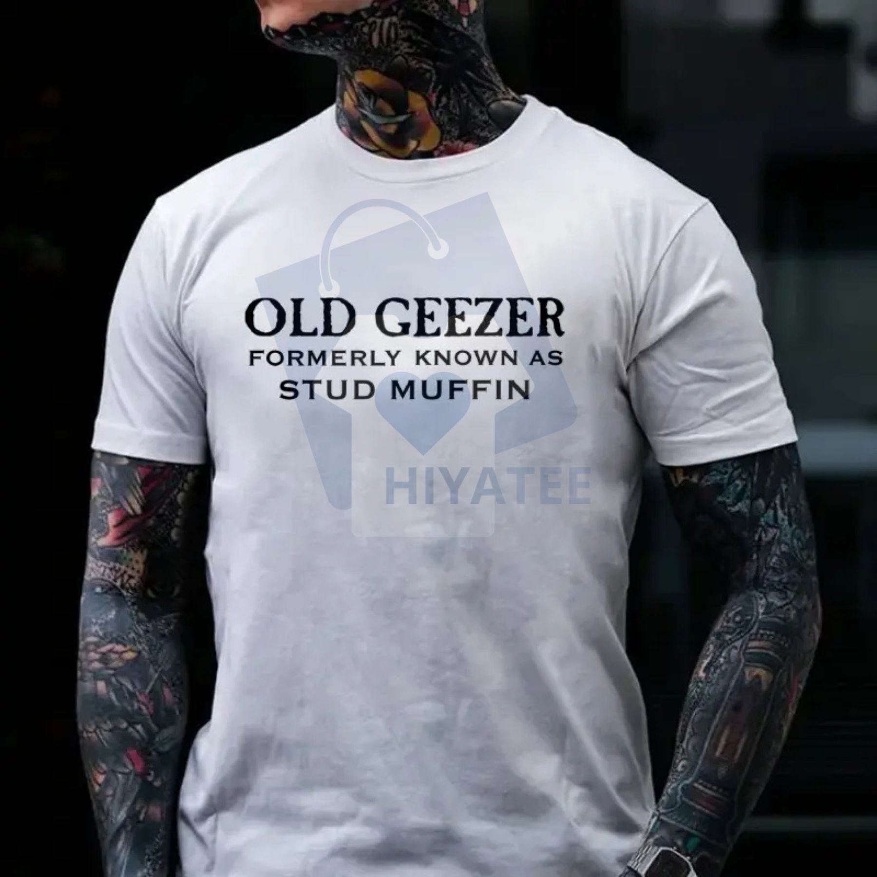 "Old Geezer Formerly Known As Stud Muffin" T-Shirt – Funny Men's Graphic Tee, Made in USA