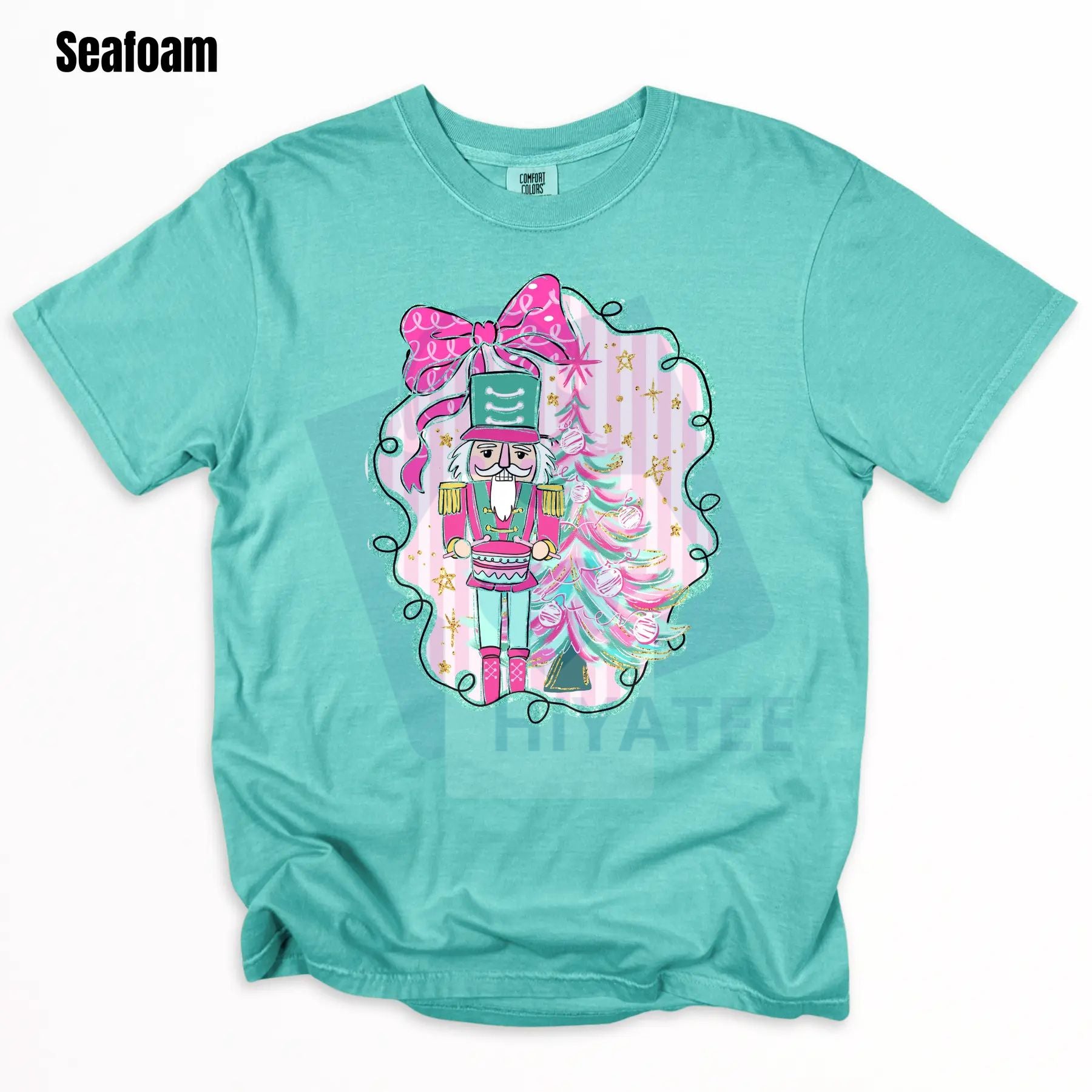 Pink & Teal Nutcracker Comfort Colors T-Shirt – Trendy Ballet "NLB" Tee, Christmas Holiday Gift