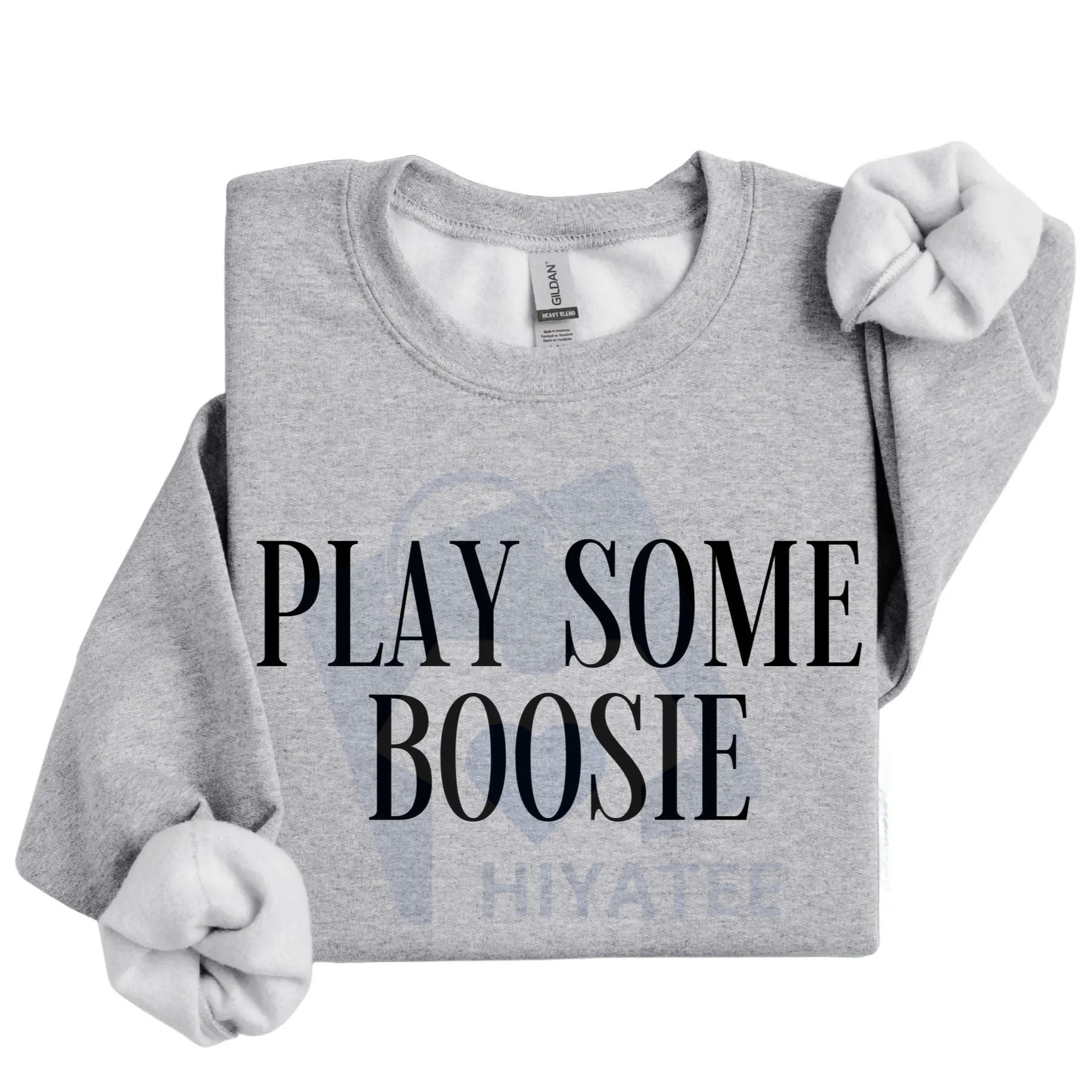 🎶🔥 Get the Vibe Right! Turn up the music and show your love for the Baton Rouge legend with the "Play Some Boosie" Sweatshirt! This bold and straightforward crewneck is perfect for any dedicated fan of Boosie Badazz (Lil Boosie) and Southern hip hop culture. It’s a statement piece that immediately signals your impeccable taste in music.