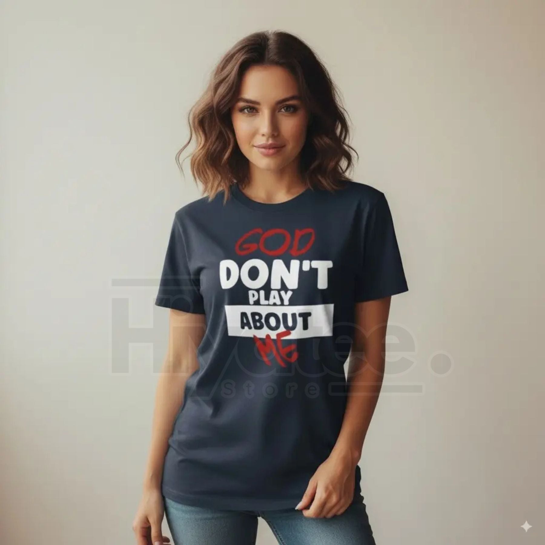 Make a bold statement of faith and confidence with our Plus Size Trendy Casual T-Shirt. Featuring the powerful "God Don't Play About Me" quote print, this tee is designed for the modern American Woman who carries her spirit with style. It is more than just an outfit; it is a reminder of your worth and the divine protection that surrounds you, making it a staple for your Inspirational wardrobe.