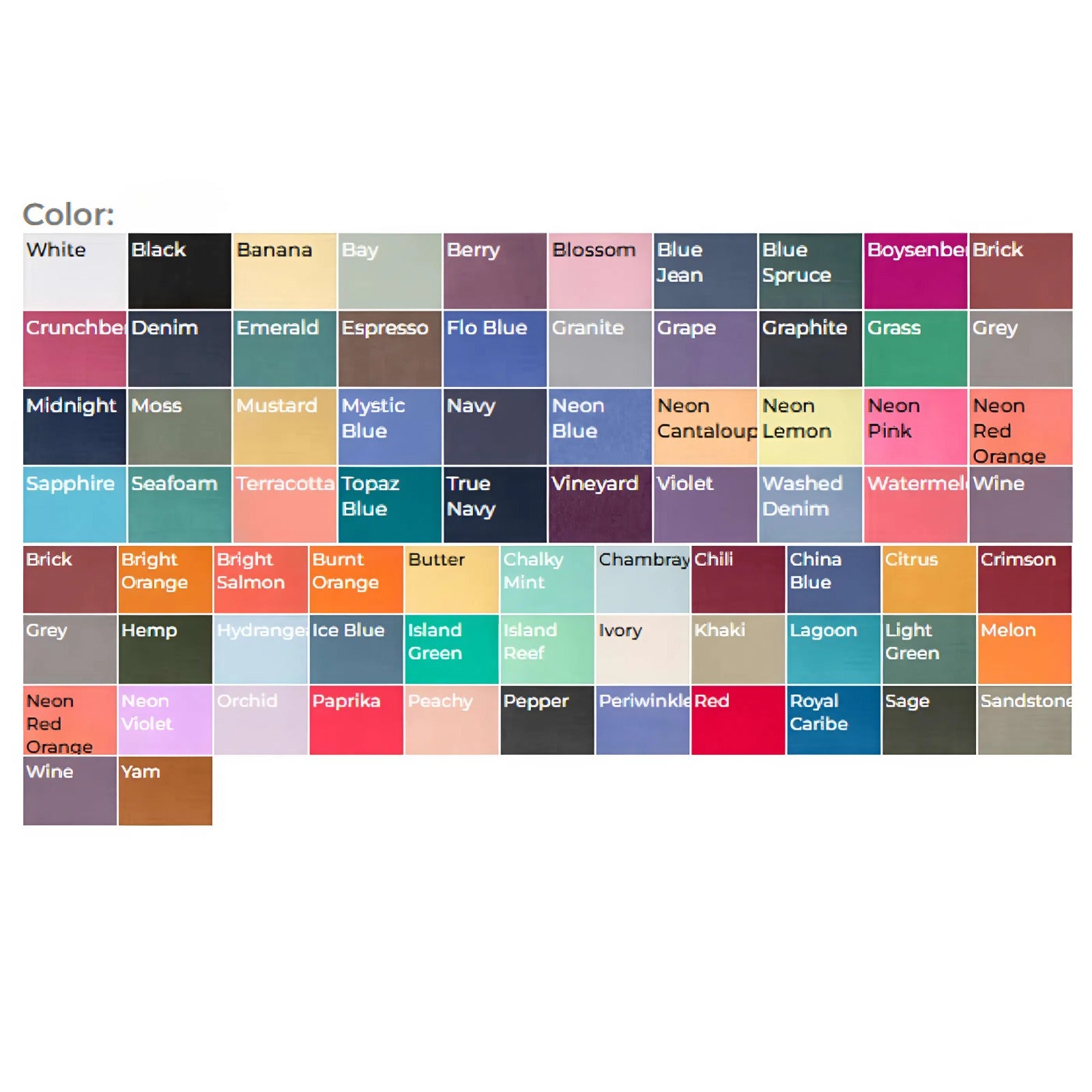 C O L O R & S I Z E C H A R T