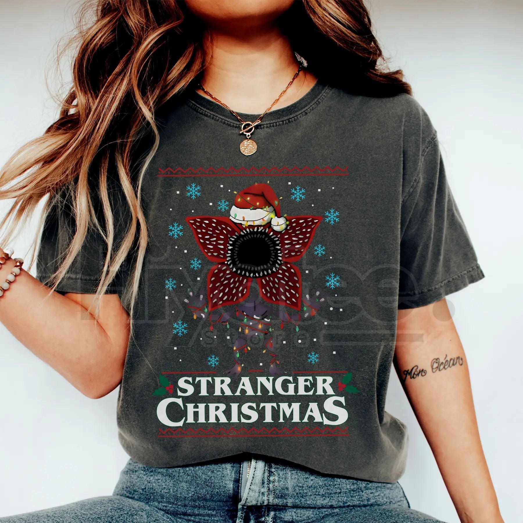 - Design: Features a Merry Upside Down holiday graphic with iconic sci-fi references.