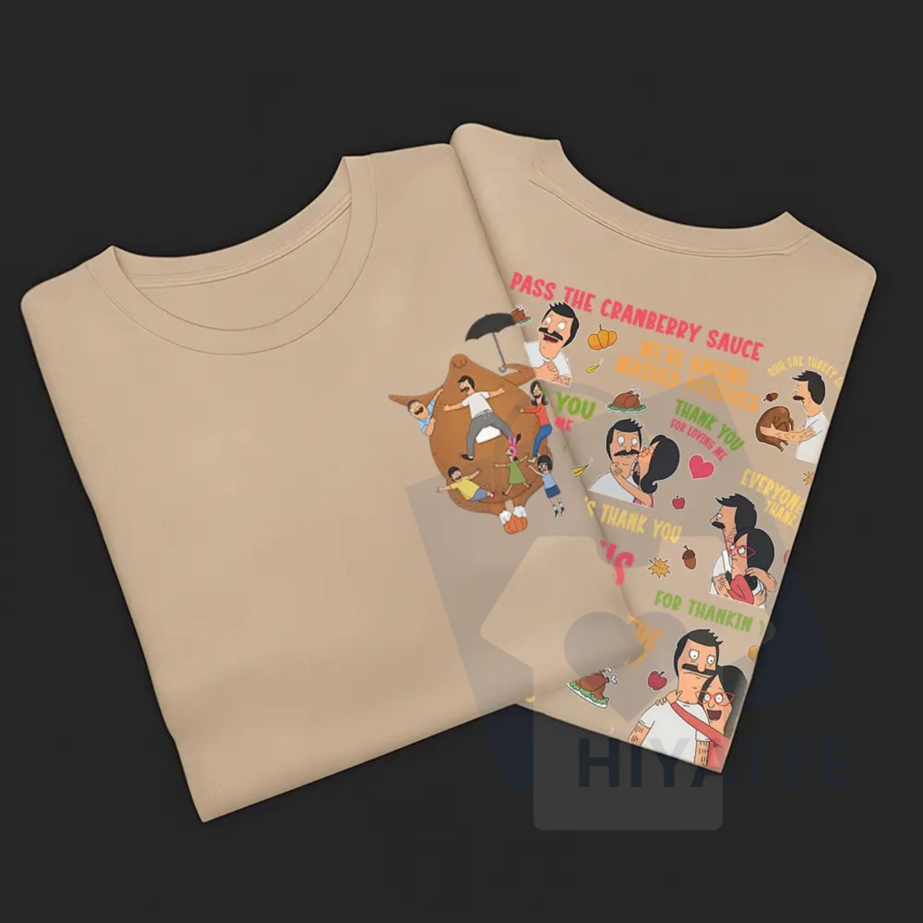 • Festive Graphic: Features a fun graphic or lyric related to a Thanksgiving Song and a Happy Thanksgiving Shirt message.