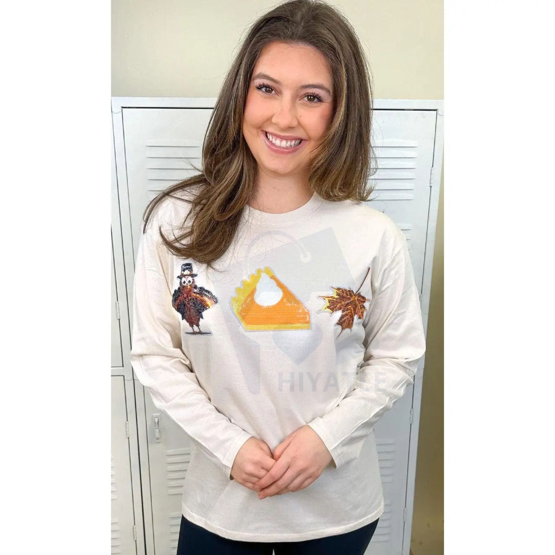 Get ready for your best-dressed and coziest holiday yet! Add the Thanksgiving Sparkle Long Sleeve Tee to your cart today.